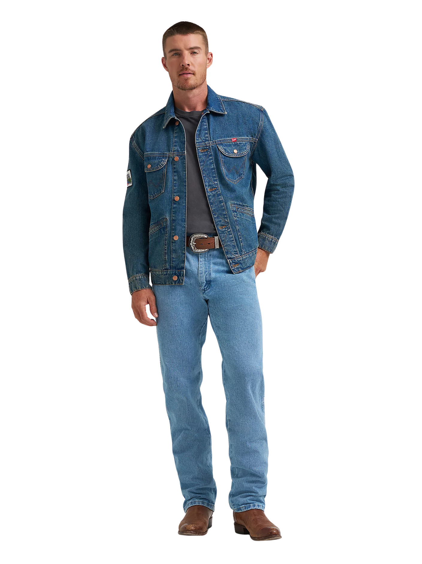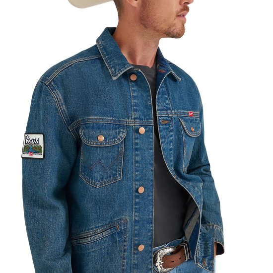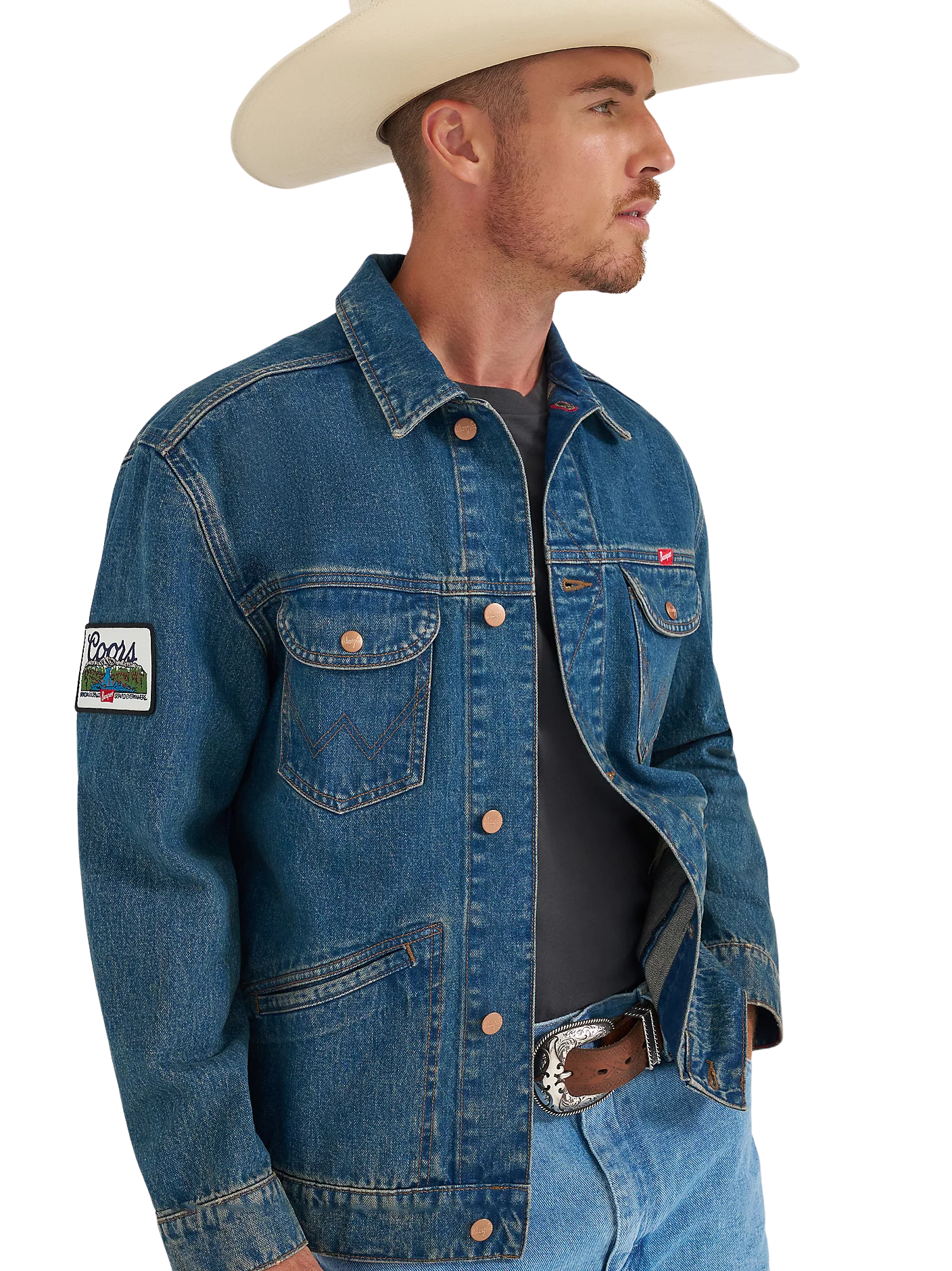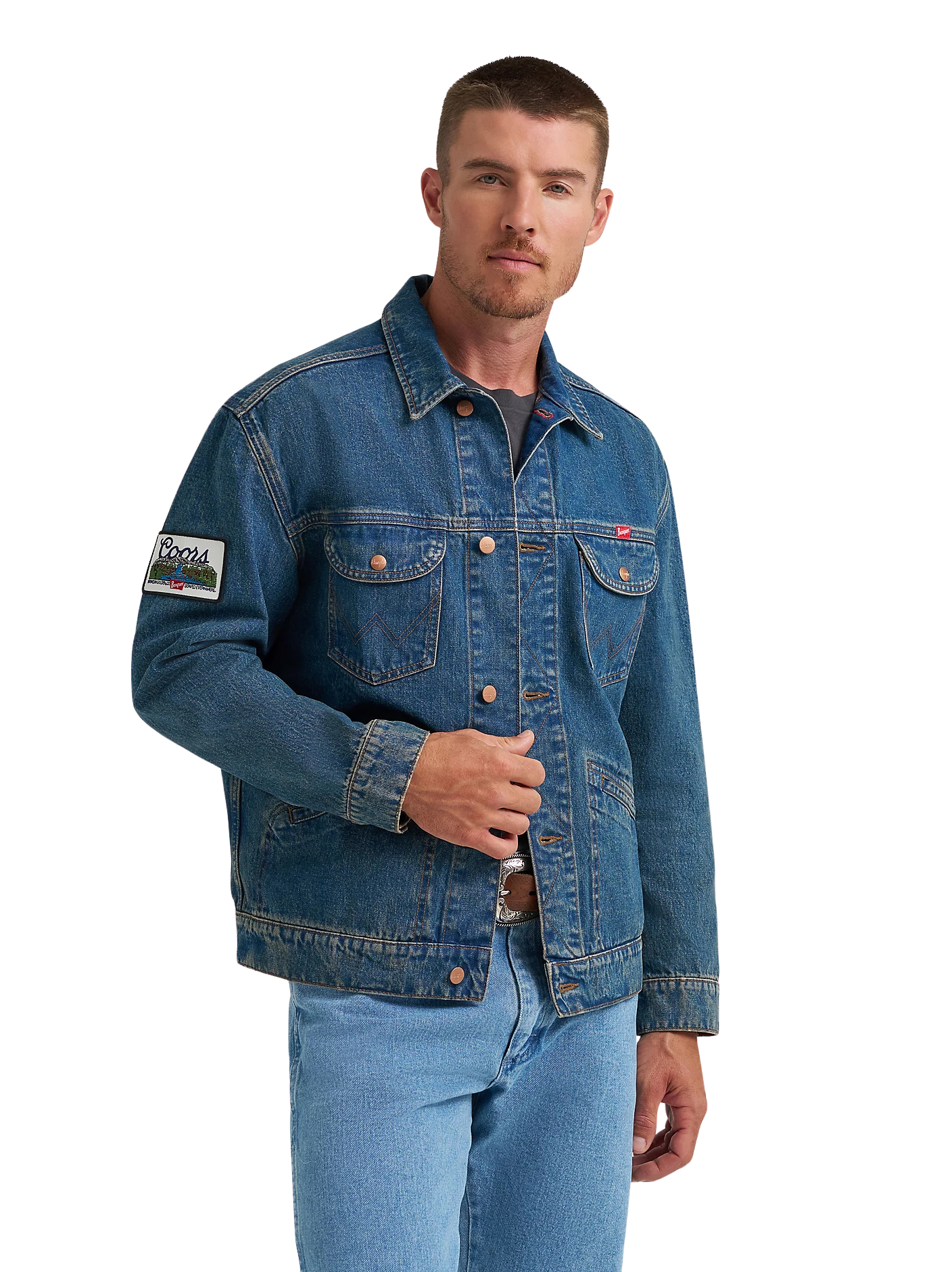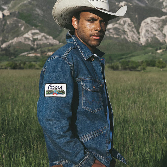 A toast to new friends and old, the ones who hop in the back, no questions asked. Ready for whatever’s waiting on the ride of life, this Wrangler® x Coors® Western Jacket will become a staple in your rotation. It comes with all the elements of a classic trucker jacket: the chest flap pockets with ‘W’ stitching, angled lower pockets, copper hardware, and leather tabs at the waist. Plus, this 100% cotton denim jacket has a woven label on the right sleeve, some Coors embroidery at the hem, and a Banquet label at the chest to bring some extra Rocky Mountain heritage to any outfit.